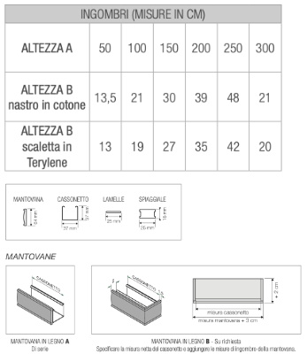• Cassonetto: mechanical 37x37 mm in painted metal in the color closest to wood;
