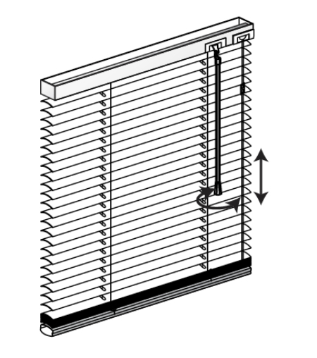 Venetian blind in wood 25 mm is a blind with wooden slats of 25 mm, with rope control for orientation and ropes for lifting.